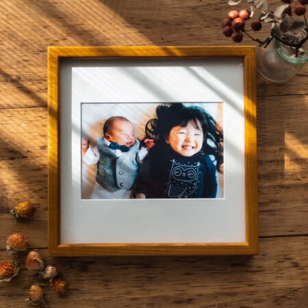 ハナミドリ写真館の記念撮影には、必ずフォトフレームをセットでお届けしています。